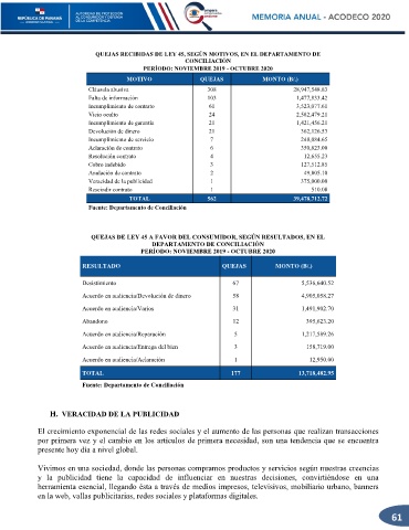 QUEJAS DE LEY 45 A FAVOR DEL CONSUMIDOR, SEGÚN RESULTADOS, EN EL