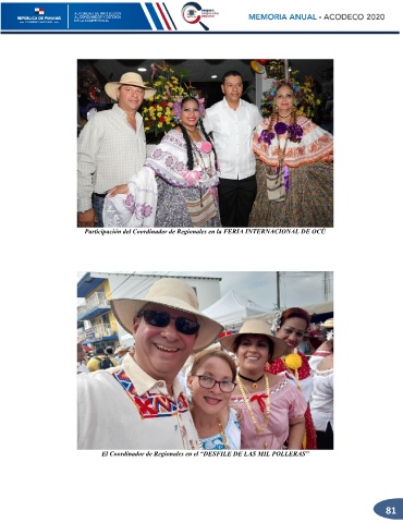 Participación del Coordinador de Regionales en la FERIA INTERNACIONAL DE OCÚ El Coordinador de Regionales en el “DESFILE DE LAS MIL POLLERAS” 81
