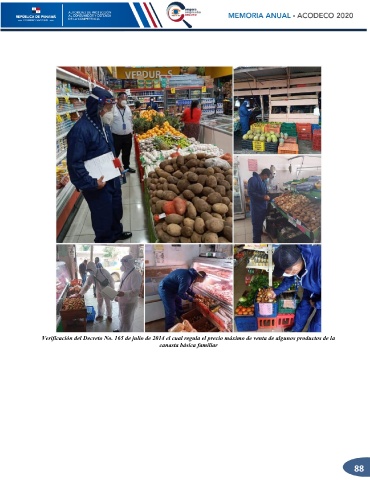 Verificación del Decreto No. 165 de julio de 2014 el cual regula el precio máximo de venta de algunos productos de la canasta básica familiar 88