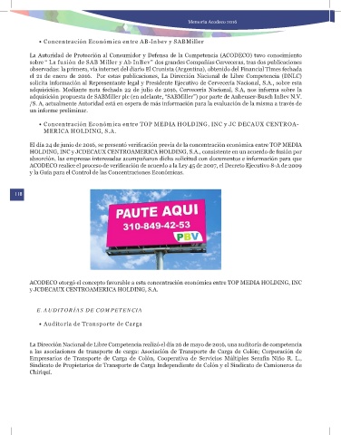 El día 24 de junio de 2016, se presentó verificación previa de la concentración económica entre TOP MEDIA