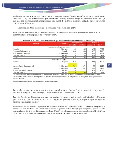 En el siguiente cuadro se detallan los productos y sus respectivos aumentos en el mes de octubre 2016,