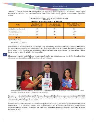 En junio de 2016, la Jefa Institucional de Recursos Humanos, Shadina Correa en representación de ACODECO
