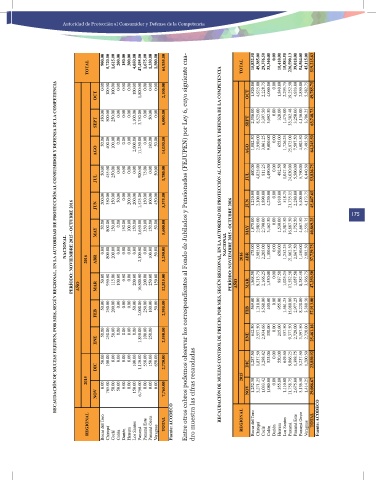 NACIONAL PERÍODO: NOVIEMBRE 2015 - OCTUBRE 2016 2016 MAY ABR 50.00 0.00 800.00 800.00 150.00 200.00 0.00 0.00 150.00 0.00 100.00 0.00 150.00 0.00 3,650.00 2,100.00 350.00 0.00 150.00 100.00 50.00 50.00 5,600.00 3,250.00 Entre otros cobros podemos observar los correspondientes al Fondo de Jubilados y Pensionados (FEJUPEN) por Ley 6, cuyo siguiente cua- RECAUDACIÓN DE MULTAS CONTROL DE PRECIO, POR MES, SEGÚN REGIONAL, EN LA AUTORIDAD DE PROTECCIÓN AL CONSUMIDOR Y DEF