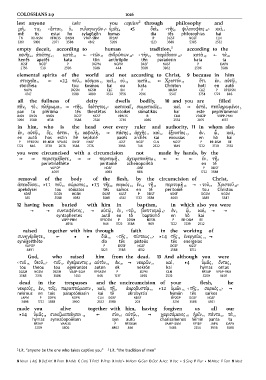 ἀπεκδύσει 9 } 11 τοῦ 10 σώματος 11 } 13 τῆς 12 σαρκός 13 ἐν 14 τῇ 15 περιτομῇ 16 ] ‹ τοῦ 17 Χριστοῦ 18›