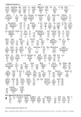 ‹ τῇ 9 Μακεδονίᾳ 10› καὶ 11 ἐν 12 ‹ τῇ 13 Ἀχαΐᾳ 14› γὰρ 3 ἀφ’ 1 ὑμῶν 2 ὁ 5 λόγος 6 } 8 τοῦ 7 κυρίου 8