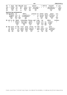 Ἐπαφρᾶς 3 μου 6 ‹ ὁ 4 συναιχμάλωτός 5› [ ἐν 7 Χριστῷ 8 Ἰησοῦ 9 Ἀσπάζεταί 1 σε 2