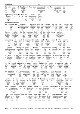 οὖν 2 ] Μακροθυμήσατε 1 ἀδελφοί 3 ἕως 4 τῆς 5 παρουσίας 6 } 8 τοῦ 7 κυρίου 8 ἰδοὺ 9 ὁ 10