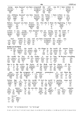 τὸν 13 κόσμον 14 ἡ 17 ἀγάπη 18 } 20 τοῦ 19 πατρὸς 20 ἔστιν 16 οὐκ 15 ἐν 21 αὐτῷ 22 ὅτι 1 πᾶν 2