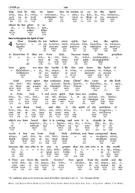 ] ἐξεληλύθασιν 18 [ εἰς 19 τὸν 20 κόσμον 21 ἐν 1 τούτῳ 2 ] γινώσκετε 3 τὸ 4 πνεῦμα 5 ]