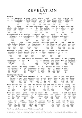 1 ] Ἀποκάλυψις 1 ] Ἰησοῦ 2 Χριστοῦ 3 ἣν 4 ‹ ὁ 7 θεὸς 8› ἔδωκεν 5 αὐτῷ 6 ] δεῖξαι 9 } 11