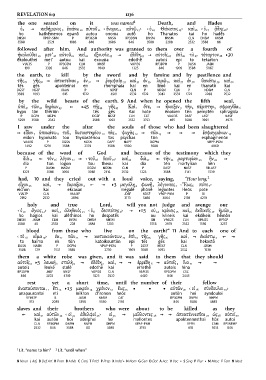 ἠκολούθει 19 μετ’ 20 αὐτοῦ 21 καὶ 22 ἐξουσία 25 ] ἐδόθη 23 ] αὐτοῖς 24 ἐπὶ 26 τὸ 27 τέταρτον 28 } 30