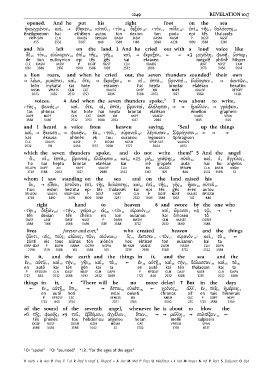 ὃν 4 ] εἶδον 5 ἑστῶτα 6 ἐπὶ 7 τῆς 8 θαλάσσης 9 καὶ 10 ἐπὶ 11 τῆς 12 γῆς 13 ἦρεν 14 αὐτοῦ 17