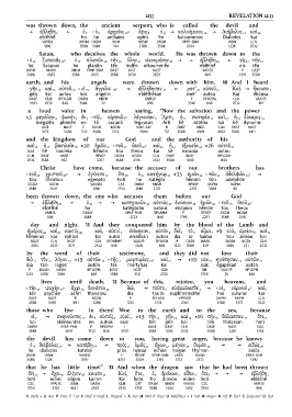 ὅτι 27 ] ἔχει 30 ὀλίγον 28 καιρὸν 29 Καὶ 1 ὅτε 2 ὁ 4 δράκων 5 εἶδεν 3 ὅτι 6 ] ] ] ἐβλήθη 7