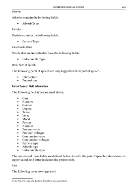 The contents of these fields are defined below. As with the part of speech codes above, an