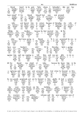 ] } 20 πολλὰ 19 ἠπόρει 20 καὶ 21 [ ] ἤκουεν 24 [ αὐτοῦ 23 ἡδέως 22 Καὶ 1 } 3 εὐκαίρου 4