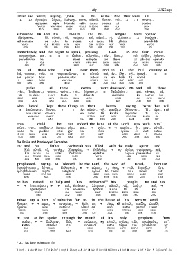 παραχρῆμα 6 καὶ 11 ] ] ] ἐλάλει 12 εὐλογῶν 13 ‹ τὸν 14 θεόν 15› καὶ 1 φόβος 5 ἐγένετο 2