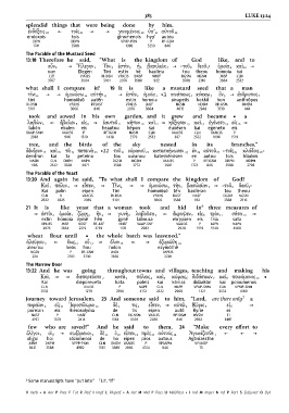 τίνι 11 ] ] ὁμοιώσω 12 αὐτήν 13 ] ἐστὶν 2 ὁμοία 1 } 3 σινάπεως 4 κόκκῳ 3 ὃν 5 ] ἄνθρωπος 7