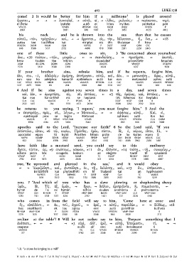 ἔχετε 6 πίστιν 7 ὡς 8 } 9 σινάπεως 10 κόκκον 9 } 11 ἂν 12 ἐλέγετε 11 } 14 ταύτῃ 15 ‹ τῇ 13 συκαμίνῳ 14›