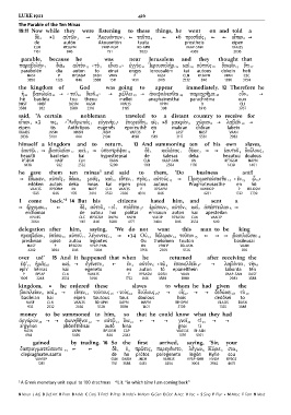 πρεσβείαν 9 ὀπίσω 10 αὐτοῦ 11 λέγοντες 12 ] } 14 Οὐ 13 θέλομεν 14 τοῦτον 15 [ ] ] βασιλεῦσαι 16