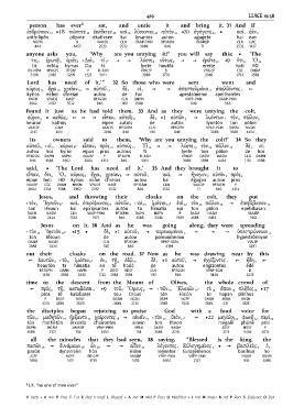 τῶν 16 μαθητῶν 17 ἤρξαντο 12 χαίροντες 18 ] αἰνεῖν 19 ‹ τὸν 20 θεὸν 21› ] } 22 μεγάλῃ 23 φωνῇ 22 περὶ 24