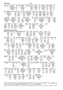 ἐν 8 σοί 9 καὶ 10 } 12 οὐκ 11 ἀφήσουσιν 12 ] λίθον 13 ἐπὶ 14 ] λίθον 15 ἐν 16 σοί 17 ‹ ἀνθ’ 18 ὧν 19›