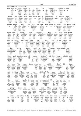 σημεῖα 9 καὶ 10 τέρατα 11 ] } 15 ‹ οὐ 13 μὴ 14› πιστεύσητε 15 ὁ 4 βασιλικός 5 [ λέγει 1