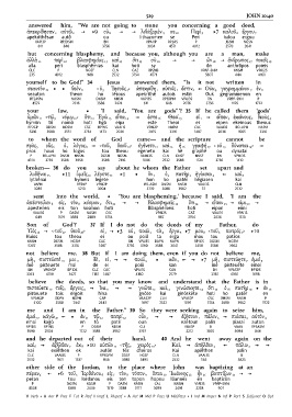 ἀπεκρίθησαν 1 αὐτῷ 2 ] } 9 οὐ 8 ] ] λιθάζομέν 9 σε 10 Περὶ 5 } 7 καλοῦ 6 ἔργου 7