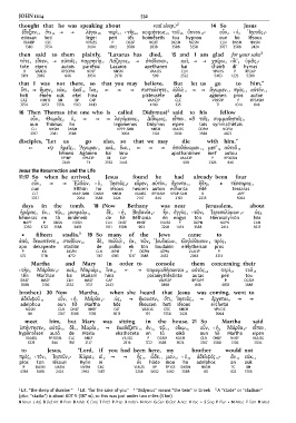 ὅτι 7 ] ἤμην 9 οὐκ 8 ἐκεῖ 10 ἵνα 5 [ ] ] πιστεύσητε 6 ἀλλὰ 11 ] ] ἄγωμεν 12 πρὸς 13 αὐτόν 14