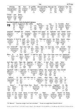 διελθόντα 11 [ τὰ 12 ἀνωτερικὰ 13 μέρη 14 { 11 ἐλθεῖν 15 εἰς 16 Ἔφεσον 17 καὶ 18 εὑρεῖν 19 τινας 20