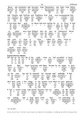 καὶ 11 ἤλθομεν 12 πρὸς 13 αὐτοὺς 14 εἰς 15 ‹ τὴν 16 Τρῳάδα 17› ἄχρι 18 πέντε 20 ἡμερῶν 19 οὗ 21 ]