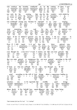 ὁ 2 παρακαλῶν 3 τοὺς 4 ταπεινοὺς 5 παρεκάλεσεν 6 ἡμᾶς 7 ἐν 10 τῇ 11 παρουσίᾳ 12 ] Τίτου 13 δὲ 3