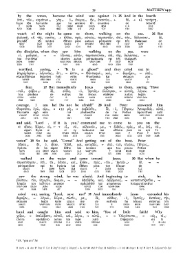 χεῖρα 7 ] ἐπελάβετο 8 αὐτοῦ 9 καὶ 10 λέγει 11 ] αὐτῷ 12 * ] Ὀλιγόπιστε 13 [ ‹ εἰς 14 τί 15›