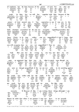 ] ἀσθενείας 5 ἀλλὰ 6 ] ζῇ 7 ἐκ 8 ] ] δυνάμεως 9 ] θεοῦ 10 γὰρ 12 ἡμεῖς 13 καὶ 11 ]