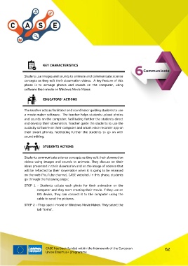 on the web (YouTube channel, CASE website). In this phase, students
