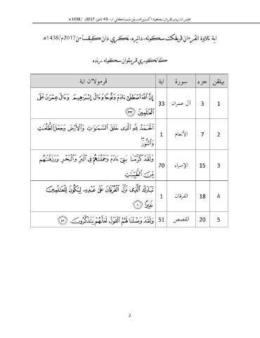 ﻫ 1438 م 2017 43 – ﮎ ٢ ﻫ 1438 م / 2017 e d c b a ` _ ^ ] \ 33 ناﺮﻤﻋ لآ 3 1 g f ( ' & % $ # " ! 1 مﺎﻌﻧﻷا 7 2 * ) g f e d c b a ` _ 70 ءاﺮﺳﻹا 15 3 i h « ª © ¨ § ¦ ¥ ¤ 1 نﺎﻗﺮﻔﻟا 18 4 ® ¬ ( ' & % $ # " 51 ﺺﺼﻘﻟا 20 5 2