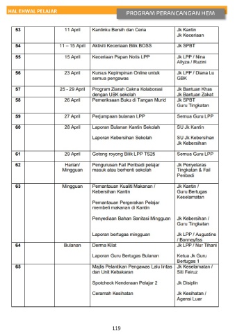 HAL EHWAL PELAJAR PROGRAM PERANCANGAN HEM 119