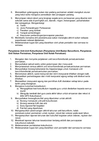 9. Menyimpan rekod-rekod yang lengkap segala jenis perlawanan yang disertai oleh