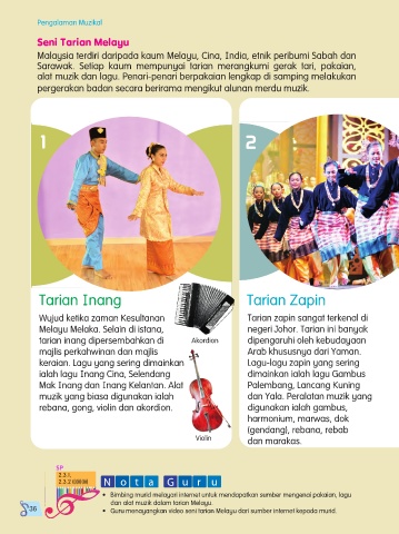 36 • Guru menayangkan video seni tarian Melayu dari sumber internet kepada murid.