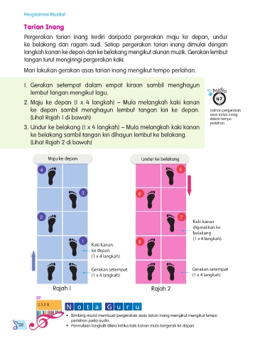 • Bimbing murid membuat pergerakan asas tarian inang mengikut mengikut tempo (Gerakan setempat)