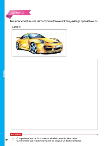 Lukiskan sebuah kereta idaman kamu dan warnakannya dengan pensel warna.
