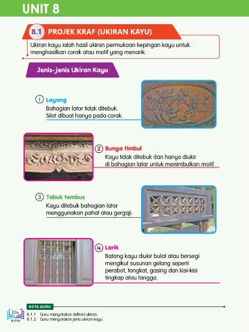 8.1.2 Guru menyatakan jenis ukiran kayu.