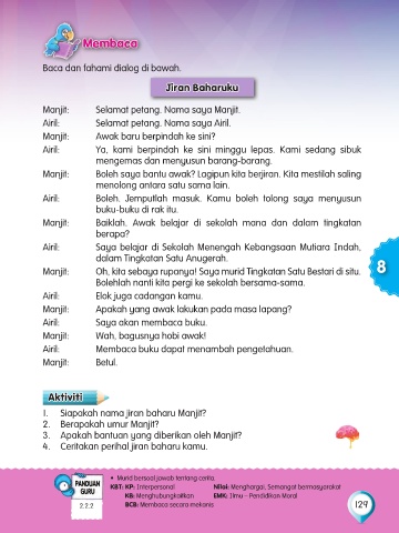 Manjit: Oh, kita sebaya rupanya! Saya murid Tingkatan Satu Bestari di situ. 8