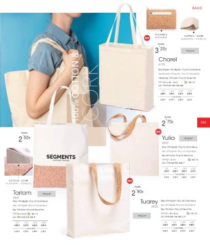 Saco. 100% Algodão 145 g/ m2/ Cortiça Natural. 6830 Saco. 100% Algodão 180 g/ m2/ Cortiça Natural.