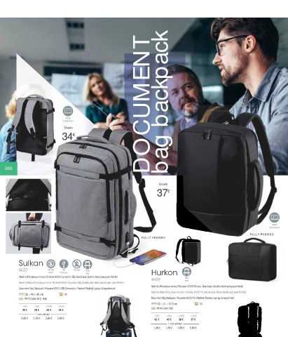 Document Bag Backpack. Polyester 600D. USB Connection. Padded. Padded Laptop Compartment.