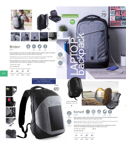 Laptop Charger Backpack. Polyester 1200D. Solar Panel 6,5W. USB Connection. Padded Laptop and Tablet