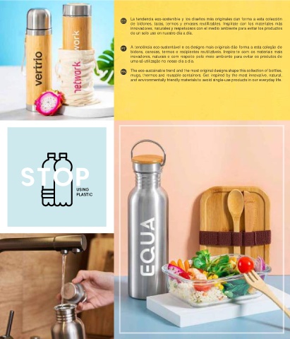 de bidones, tazas, termos y envases reutilizables. Inspírate con los materiales más