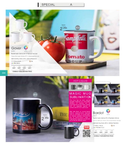 2 35€ por el recubrimiento negro, y Taza Sublimación. Cerámica. 350 ml. Presentación Individual.