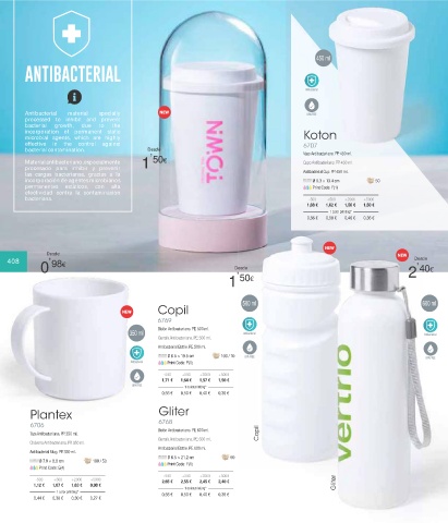 Material antibacteriano, especialmente 1 50€ Copo Antibacteriano. PP. 450 ml.