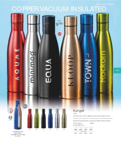 Insulated Bottle. Stainless Steel. 500 ml. Copper Vacuum Insulated. Individual Presentation.