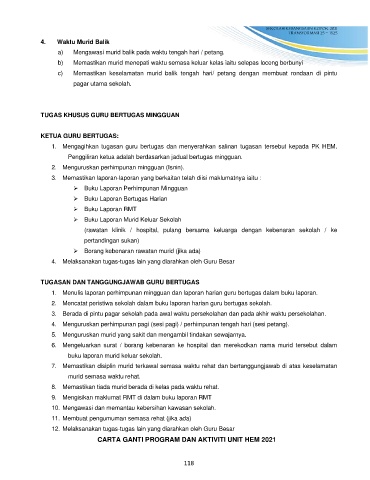 4. Menguruskan perhimpunan pagi (sesi pagi) / perhimpunan tengah hari (sesi petang).